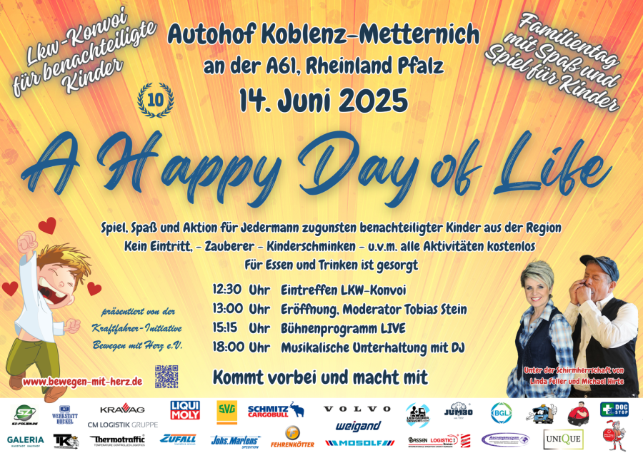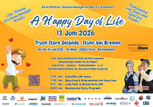 Lkw Fahrer:innen bereiten benachteiligten Kindern ein schönen Tag. Seit 2014 findet das Event "A happy Day of Life" jedes Jahr in einen anderem Bundesland