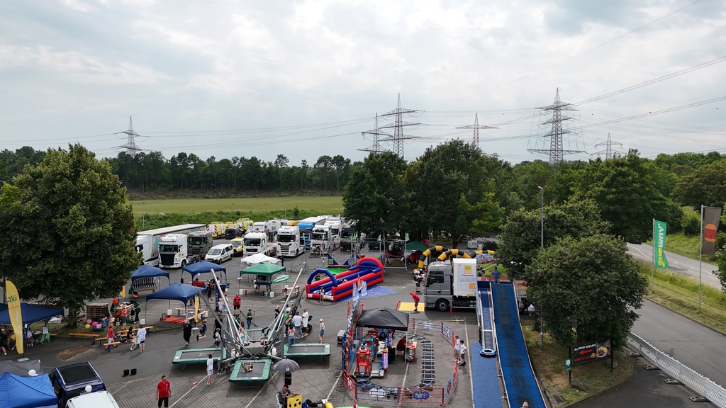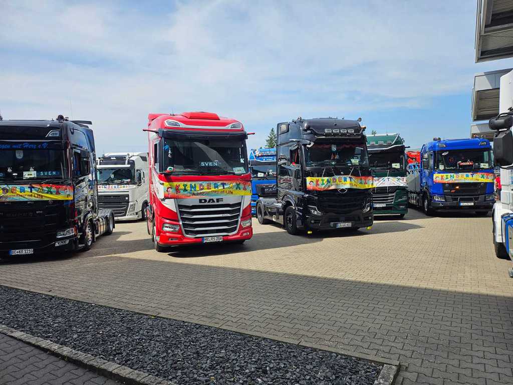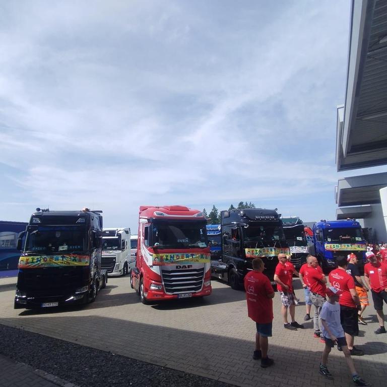 statt. Bis zu 100 Lkw holen unsere Ehrengäste, die Kinder, aus verschiedenen Einrichtungen zu einer Sternenfahrt und einem unvergesslichen Tag, mit Spiel und Spaß, ab.
